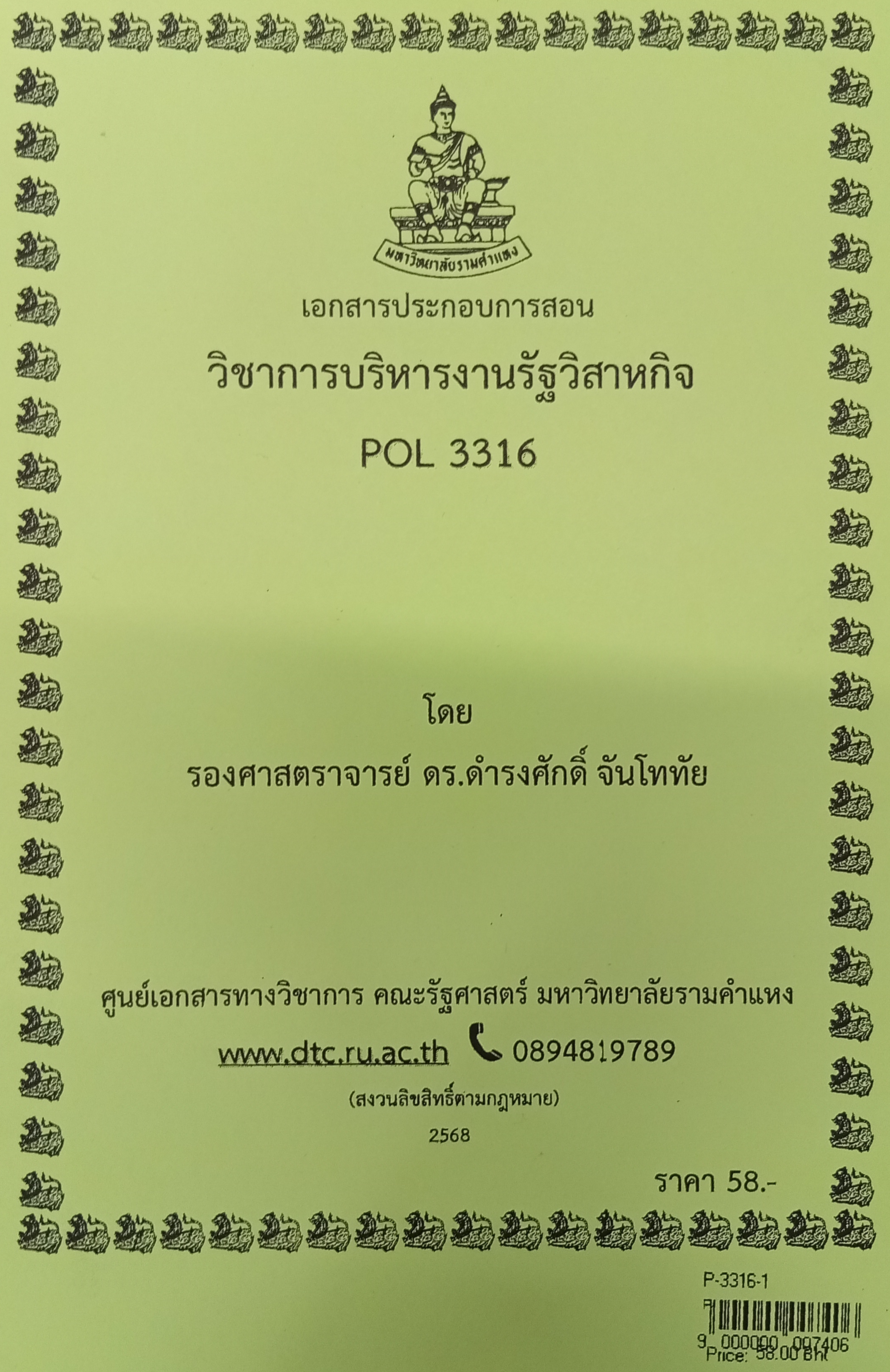 POL 3316 (PA 333)การบริหารงานรัฐวิสาหกิจ (ใช้ในการบรรยาย ป.ตรี ส่วนภูมิภาค เท่านั้น)